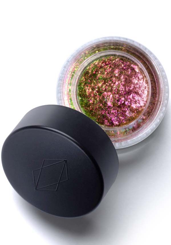 Glitter, redefined! These multichrome flakes are plastic-free, eye-safe and look like a million bucks! Because who says you can't have both? Convenientely served in an innovative gel base that's made from plants, is bio-degradable and still keeps your multichrome flakes exactly where they should. For exceptional wear-time with zero fallout. And yes: they're smudge-proof and water resistant.