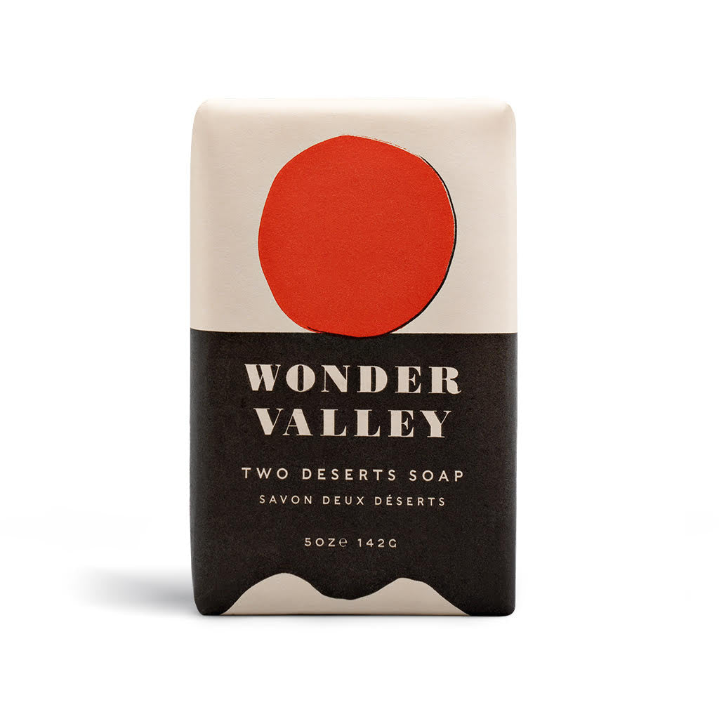 All our favorite scents including Juniper, Sage, Vetiver, Cardamom, Smoke and Galbanum, come together in the newest release from our friends at Wonder Valley. With its main ingredient of Wonder Valley Olive Oil, this bar moisturizes and hydrates deeply while transporting you to the desert with its golden orange color from the addition of beta carotene. This is desert living at its best. 5oz.